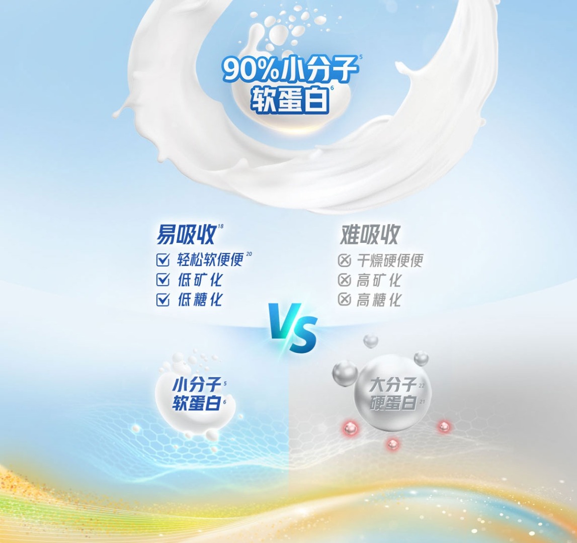 [9] 分别指Novas软蛋白,酪蛋白矿化水平更低,消化和吸收速度更快:Eijnatten V M J E, et al. Food Funct., 2024,15,3098;90%天然营养小分子,结构更小好吸收:G.A.A. van Lieshout et al.The American journal of clinical nutrition,2025
